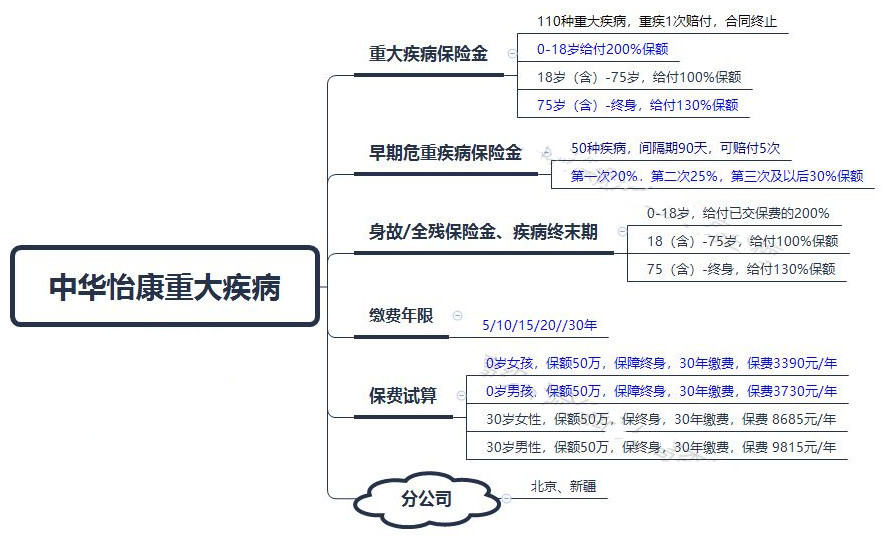 中華怡康單次賠付重疾險(xiǎn)