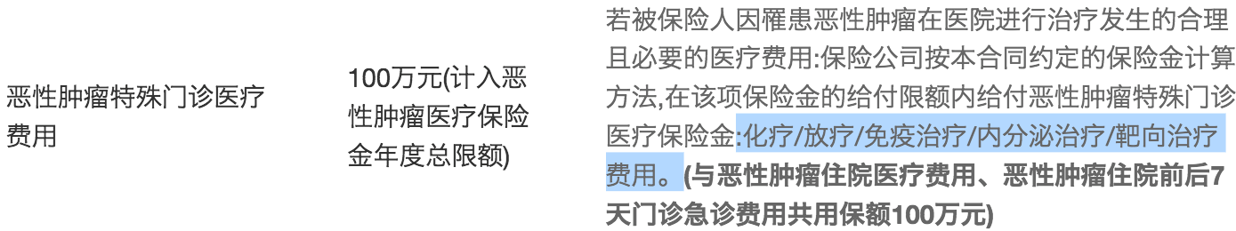 2保險責任包括惡性腫瘤的特殊門診醫(yī)療費用,包括化療,放射治療,免疫治療,內分泌治療,靶向治療等。如慢粒慢性粒細胞白血病是不需要住院的,但需要長期服藥維持,有針對性的治療。