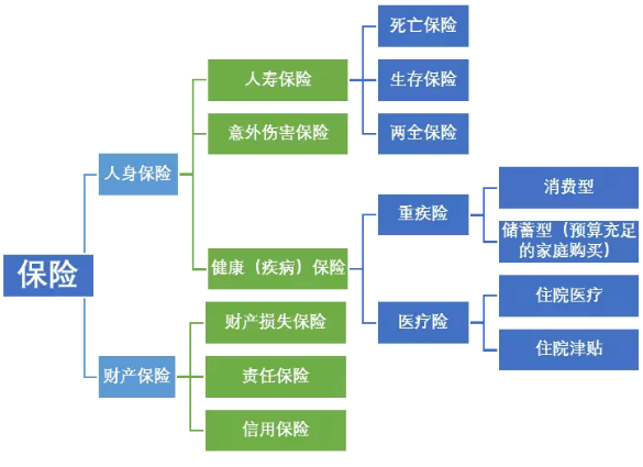 首先,我們要知道,在保險(xiǎn)上面,從主體劃分的話,就分為人身保險(xiǎn)和財(cái)產(chǎn)保險(xiǎn)兩大類。當(dāng)然,我們要說的只有人身保險(xiǎn)這一類,人身保險(xiǎn),其中還分為人壽保險(xiǎn)、健康(疾病)保險(xiǎn)、意外傷害保險(xiǎn)三類。