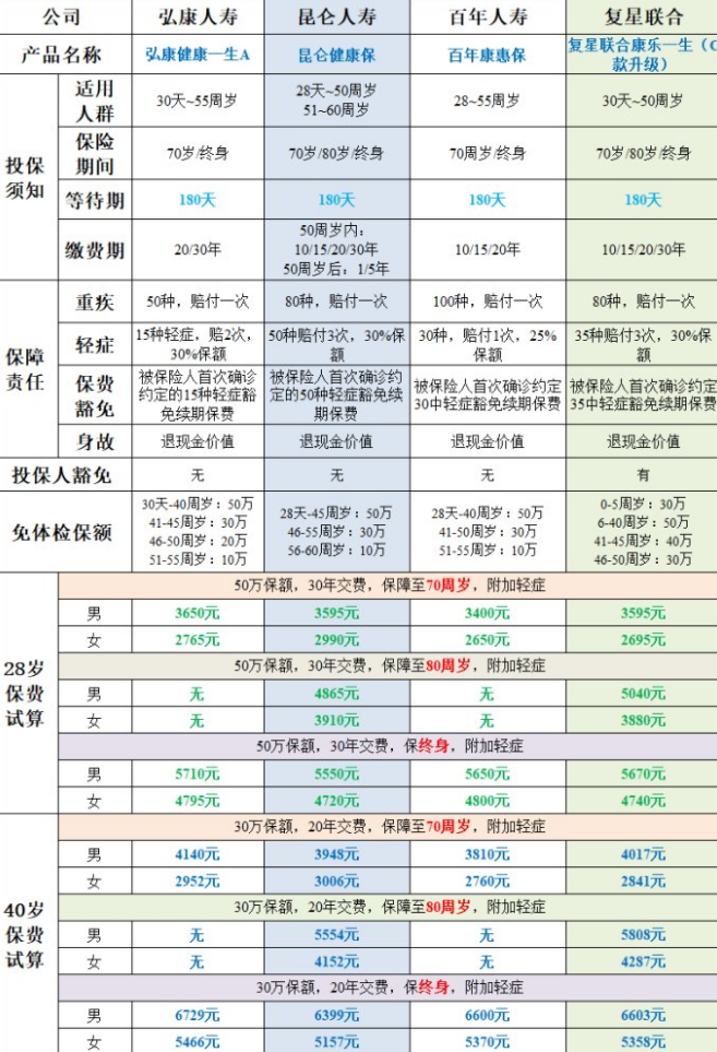 1、從保險(xiǎn)年齡開(kāi)始,50歲以內(nèi)的四種產(chǎn)品都可以投保,51至55歲,雖然昆侖健康保也可以投保,但是保險(xiǎn)金額只有躉交或5年交,保險(xiǎn)金額更高但支付壓力很大。此時(shí),您可以選擇百年康惠保和弘康健康一生A。