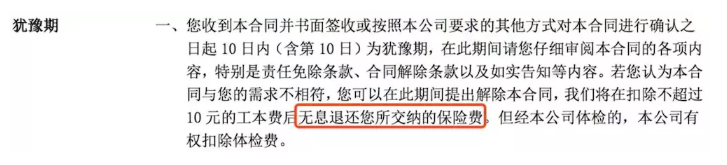 簡單地說,在購買保險(xiǎn)后的10天內(nèi),如果您認(rèn)為您購買錯(cuò)了、后悔了、與代理商描述的不一樣;你可以在猶豫期內(nèi)隨時(shí)申請退保,保險(xiǎn)費(fèi)用完全撤退!如果您在線下購買,可能會(huì)扣除10元的費(fèi)用。如果猶豫期結(jié)束,即使被保險(xiǎn)人違約,損失也會(huì)相對較大。
