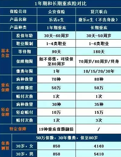 為了讓每個人都能更容易地做出決定,我們選擇了兩個典型的產(chǎn)品比較來說明一年期和長期重大疾病保險的優(yōu)缺點。