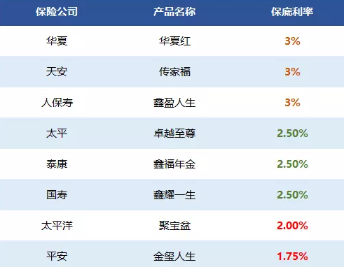 我們通過近幾年的幾種產(chǎn)品來看待保底利率的差異: