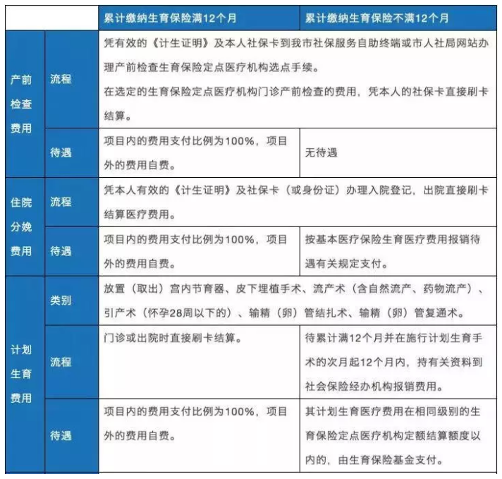 只要員工分娩上個月,按照生育保險全額繳納的規(guī)定和累計繳費保險12個月,即可享受以下待遇。