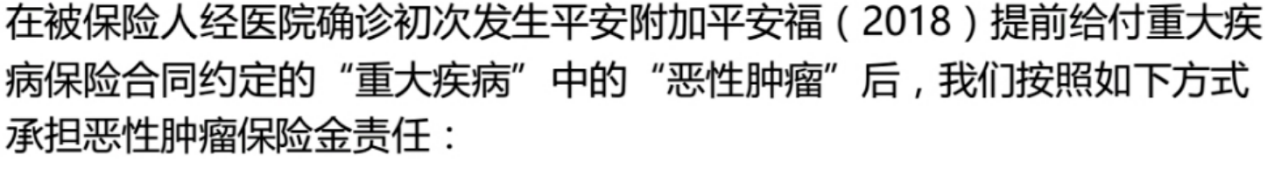 也就是說,無論第一次診斷是惡性腫瘤還是非惡性腫瘤,癌癥的附加險有效。