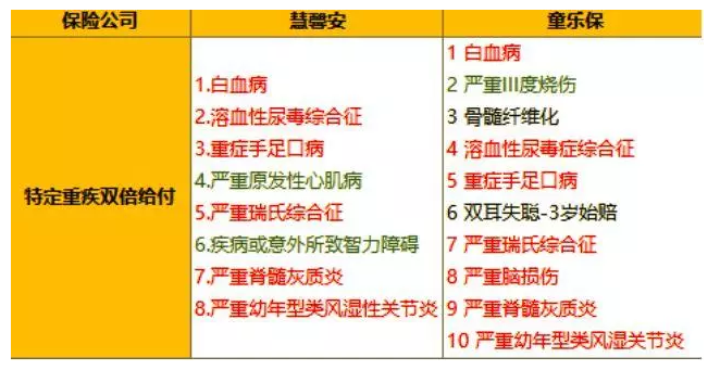 童樂保輕癥是40種,也略高于慧馨安,基本上包括患有高危疾病的兒童。