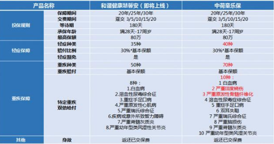 下面就簡(jiǎn)單對(duì)比一下中荷童樂保和慧馨安,如下圖: