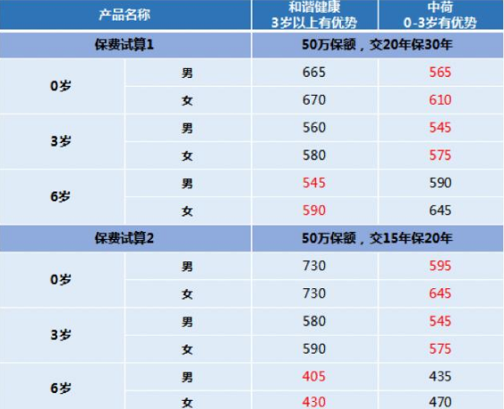 下圖是中荷童樂保和慧馨安的保費(fèi)對(duì)比