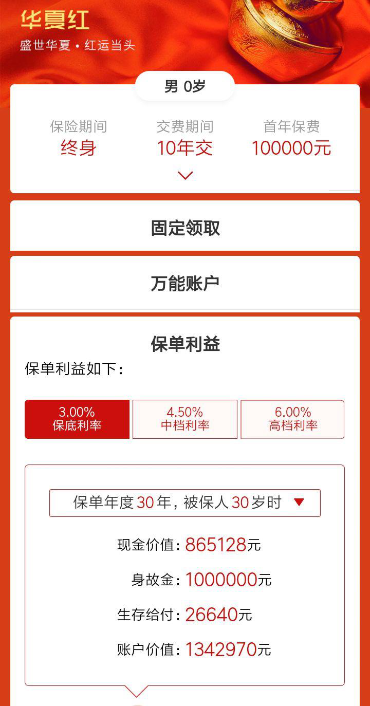 采用保底利率則為合同確定利率,如華夏萬能保底為3.0%,太平萬能保底利率為2.5%,平安萬能保底利率為1.75%。