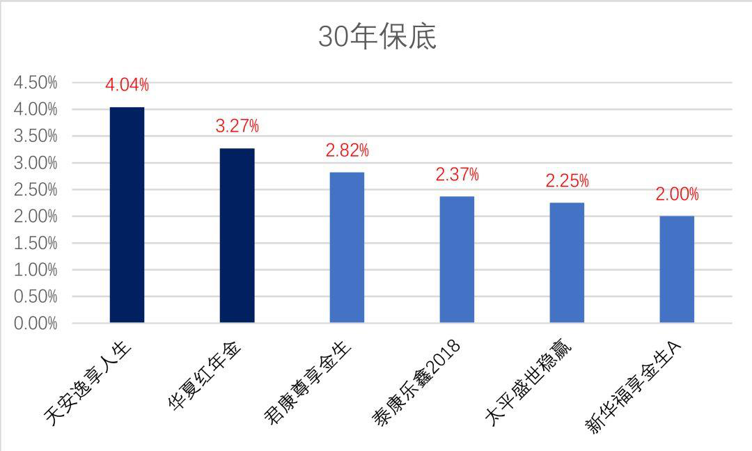 30年與60年保底收益較高的是天安,華夏紅,君康尊享金生等。