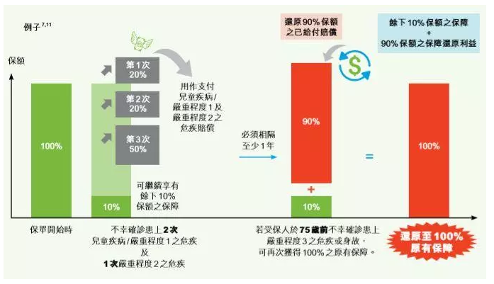 7.在理賠之后可以恢復(fù)高達(dá)90%的保額,并且可以再次獲得高達(dá)100%的原始保障