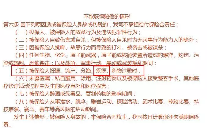 上圖是市場上熱銷的意外險產(chǎn)品的豁免條款。可以看出,由疾病引起的藥物治療(無論是否為急性疾?。?、死亡,保險公司不承擔賠償責任。而且這個產(chǎn)品的安意保,如急性心肌梗死和搶救無效,保險公司直接賠付20萬保額。