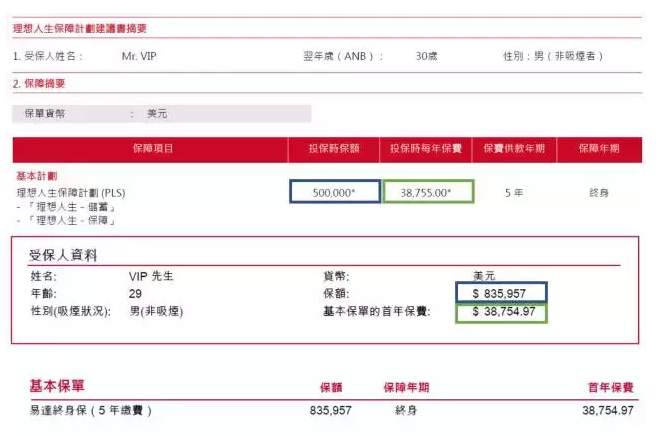 「易達(dá)終身?!棺鳛橐豢罱K身壽險(xiǎn),與相同的保費(fèi)可以移動(dòng)壽險(xiǎn)保額在同類產(chǎn)品中具有明顯的優(yōu)勢。與大陸產(chǎn)品相比,被稱為“內(nèi)地最具成本效益的終身壽險(xiǎn)橫琴“優(yōu)愛寶””,很容易被「易達(dá)終身保」擊敗。與香港產(chǎn)品相比,例如,一名29歲(30歲)非吸煙男性為例,對(duì)于保費(fèi)壽險(xiǎn)而言,5年年繳保費(fèi)的為38,755美元,以及「易達(dá)終身?!箍梢蕴峁┍n~的死亡。 836,000美元,而保誠的理想人生僅提供 500,000美元,而「易達(dá)終身?!固峁└叩谋WC收益率和預(yù)期回報(bào)。