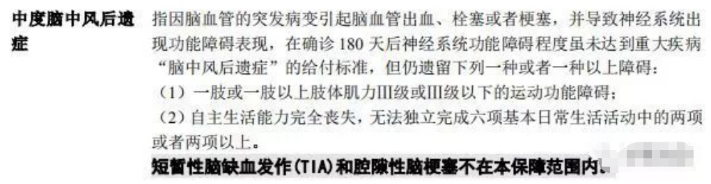 中癥包含高風(fēng)險(xiǎn)疾病腦中風(fēng)病,達(dá)到中度腦中風(fēng)后遺癥支付標(biāo)準(zhǔn),即賠付保額60%,中癥保障配額是業(yè)內(nèi)最高的。
