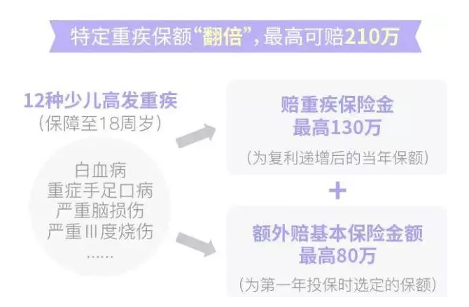 2、特異性嚴(yán)重疾病保額更高:12種兒童患有高比重疾病保額“翻倍”,最高可賠付210萬(wàn)