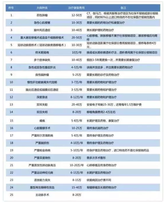 保險行業(yè)協(xié)會與中國醫(yī)師協(xié)會共同制定了重大疾病的定義,對25種重大疾病的定義基本相同。 25種最嚴重的疾病占保險理賠的95%以上,前6位流行率高達80%。
